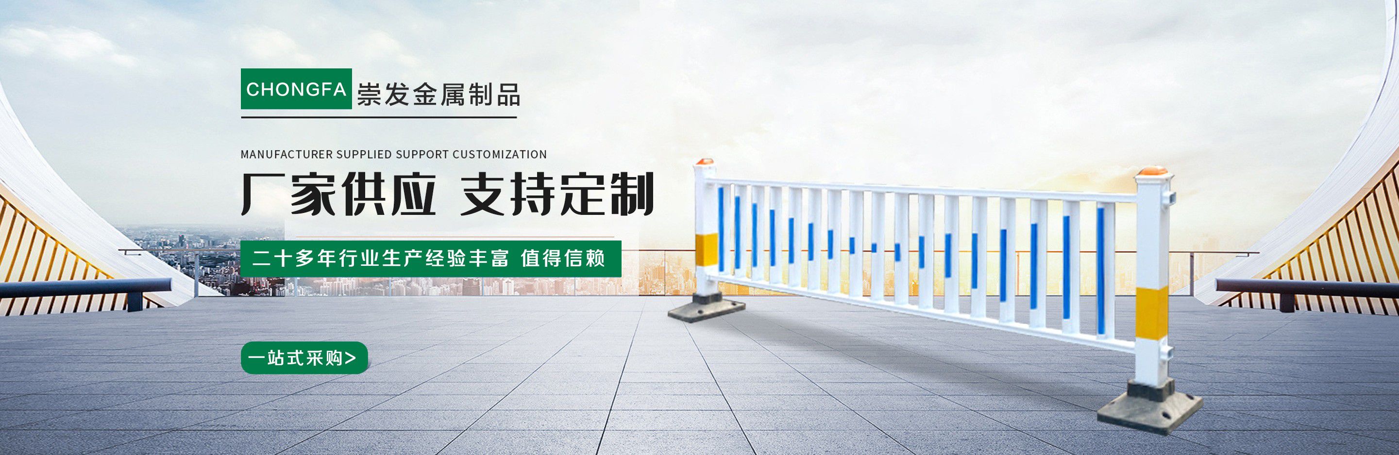 山東崇發金屬制品有限公司位于“江北水城“”之稱的聊城,地理位置優越,交通方便。公司占地面積50000平方米,建有標準化廠房及辦公樓等配套設施,建筑面積30000平方米。  公司是一家設計、銷售、安裝為一體的護欄工程企業,本公司主要生產各種燈光護欄,防撞護欄,橋梁護欄,鋁合金護欄,不銹鋼復合管護欄,河道護欄等。公司擁有先進的全自動激光切割設備和機器人焊接設備,能夠保證護欄產品的精度和表面光潔度。  公司優勢一、專業性強1、設計、提供和安裝各種護欄工程。擁有護欄設計、銷售與安裝為一體的完整體系。  2、應用領域:防撞護欄、橋梁護欄、河道護欄、燈光護欄、道路護欄等。  二、價格優勢公司擁有獨立的生產車間,無論管材還是立柱鋼板及表面處理都可在本公司內自行加工完成,減少中間環節,給客戶提供合理的價格,優質的產品。  我們將始終堅持“開拓國際市場,信譽就是效益”的經營理念,憑借一批思想統一、團結拼搏、業務熟練、對客戶高度負責的團隊力量,與廣大客戶攜手共進,合作雙贏,一起迎接明天的輝煌!...